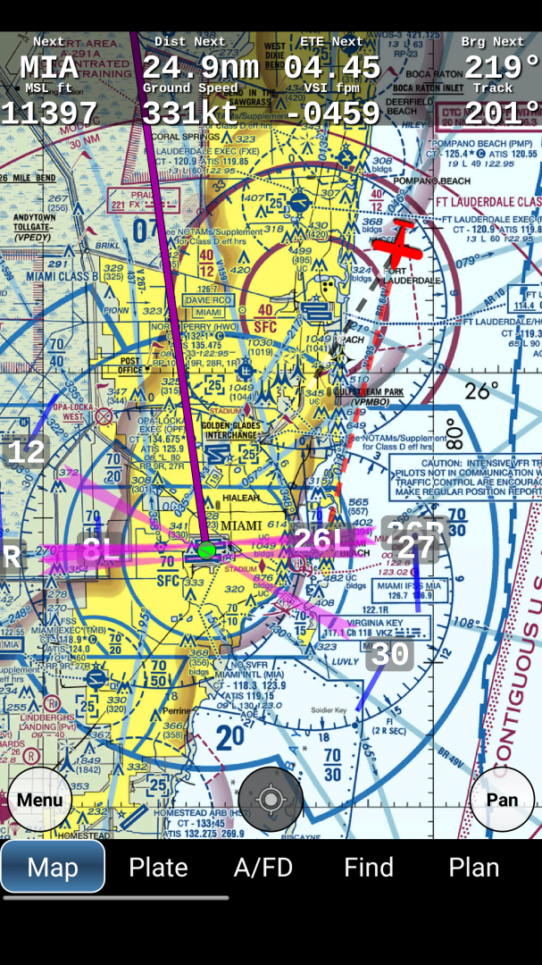Here's some screen shots of the Avare app everything worked perfectly, I even put in the way points flighaware. The first pic is us following a (vector route?) into MIA and then we break off and land on runway 12. If it wasn't for this thread is I'd have never thought to look it up, thanks cy.