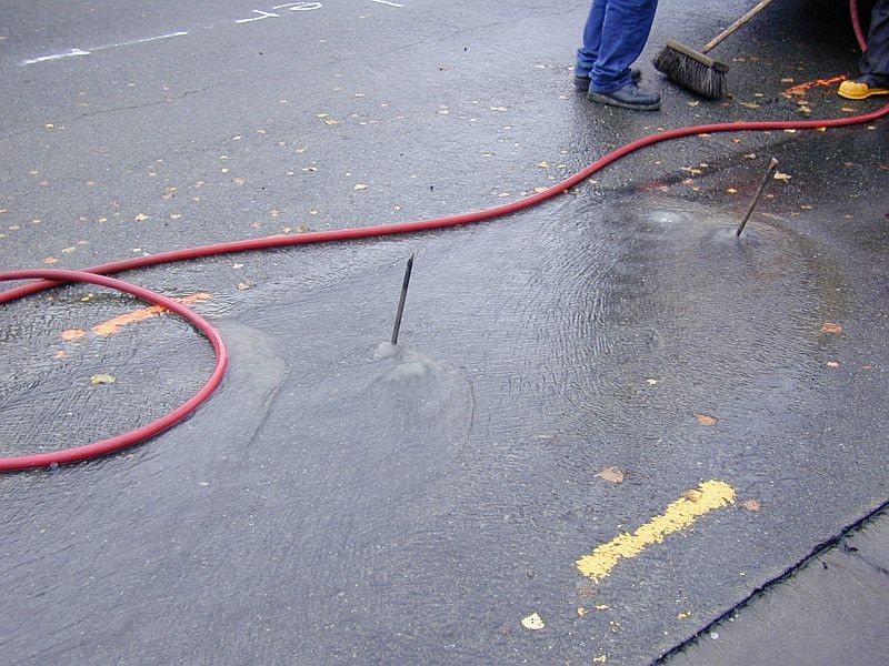 The next day the grout truck will come and use those small holes ta fill up the cavity.