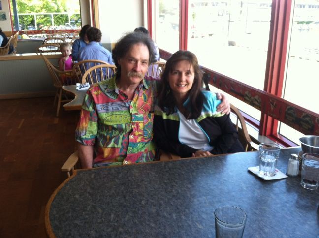 Pic of H. and her mom posing as the "Equality State" tourists in 2012, and L. and Uke having lunch