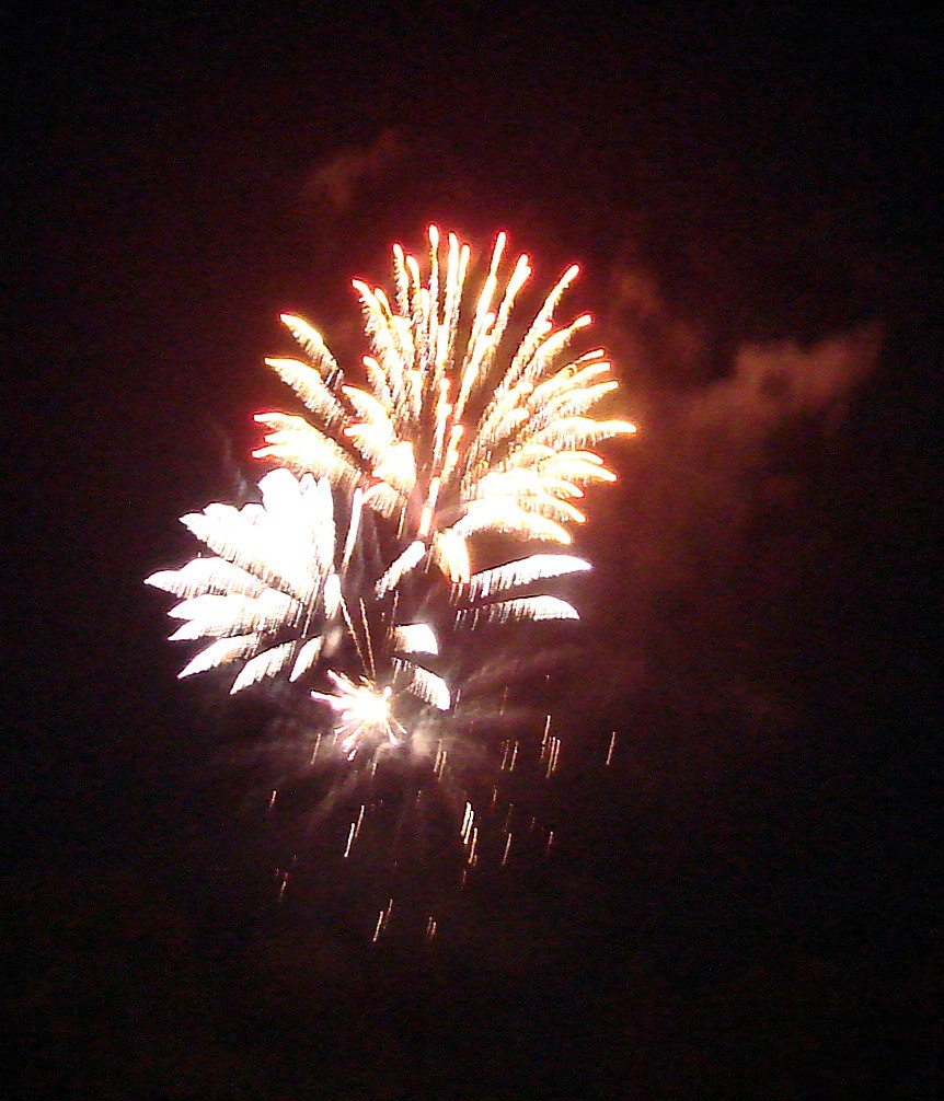 of the neighborhood fireworks show near the church and