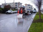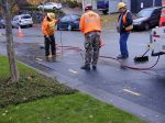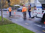 I came inside ta dry off... Not only is it gushing, but it's pouring as well! Hopefully it'll be repaired by bedtime... However this crew IS on overtime, and they all hafta work safely! I checked 'em out for PPE... They're compliant, not ta mention they DID have the job briefing before touching a damn thing! That's a biggie with Seattle Public Utilities now...